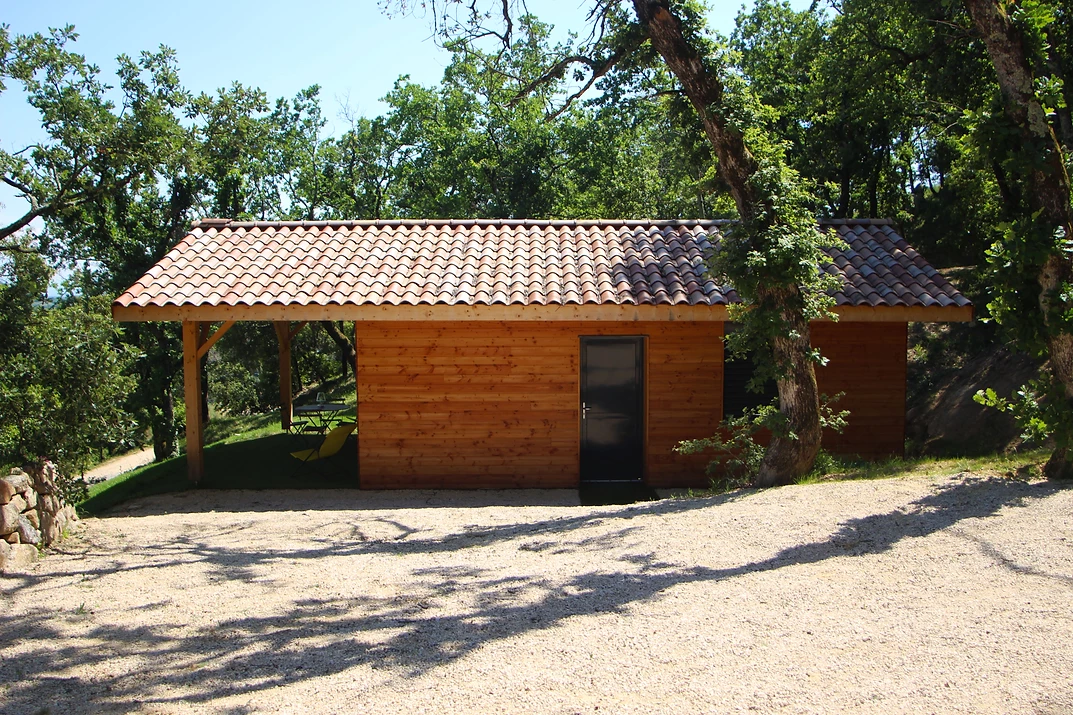 A l’ombre des chênes verts, avec une vue imprenable sur le Château de Crussol et la Vallée du Rhône, deux gîtes climatisées de 32m² avec terrasses couvertes de 18 m².
